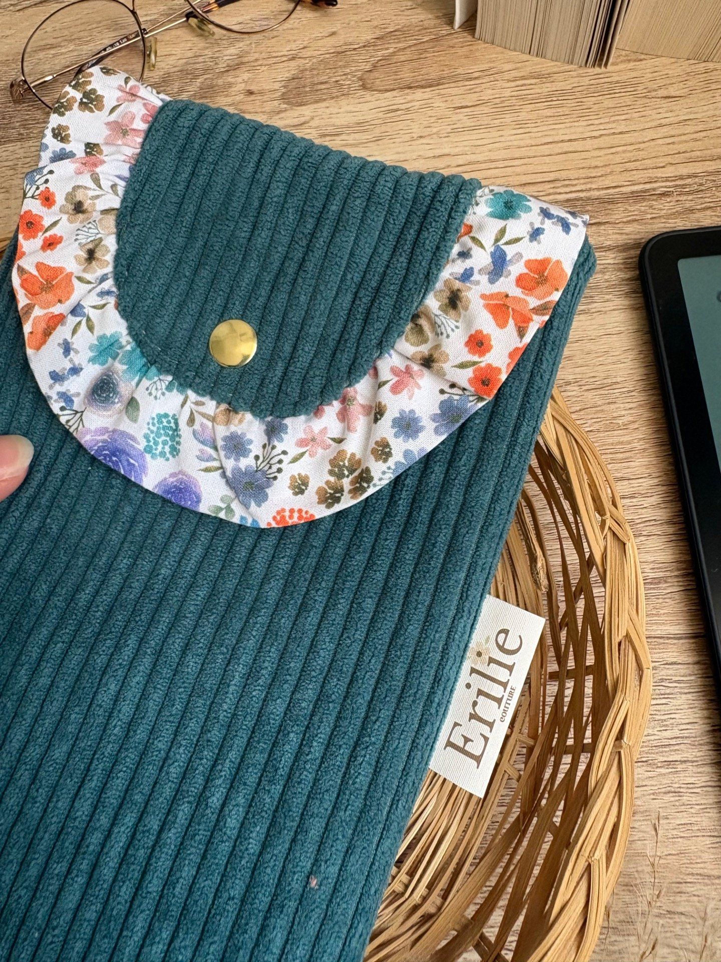 Pochette liseuse bleu canard