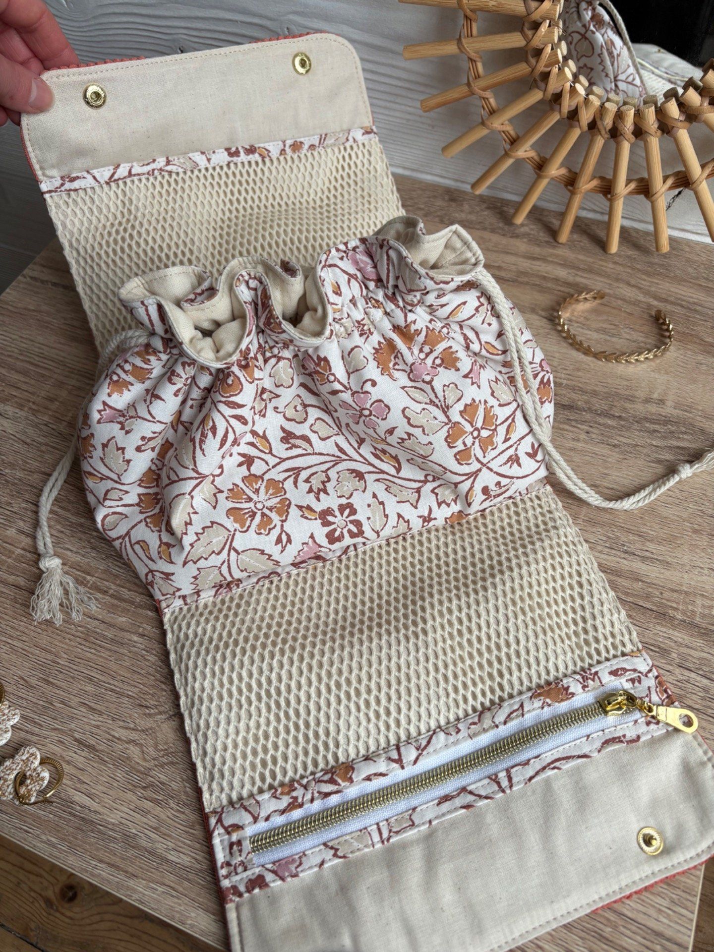 Offrez à vos essentiels de beauté une touche d'élégance naturelle grâce à ce pochon original et entièrement fait main.